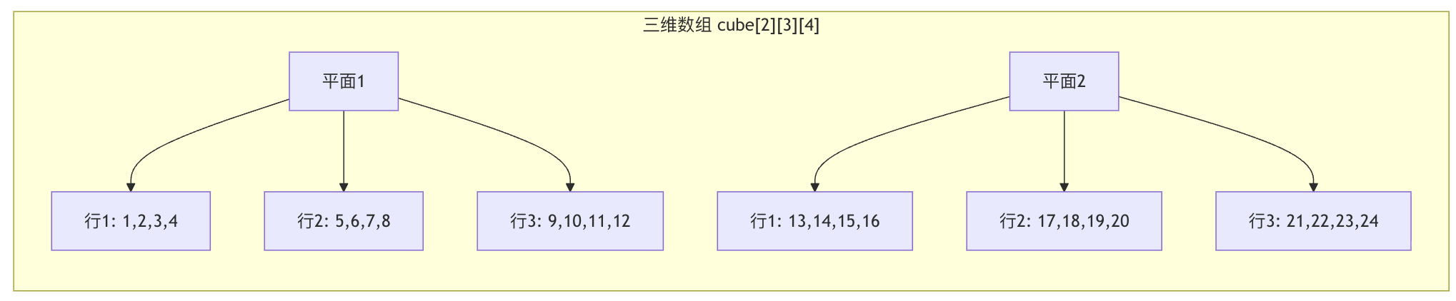 - 三维数组:像一个立方体,需要长、宽、高三个坐标
