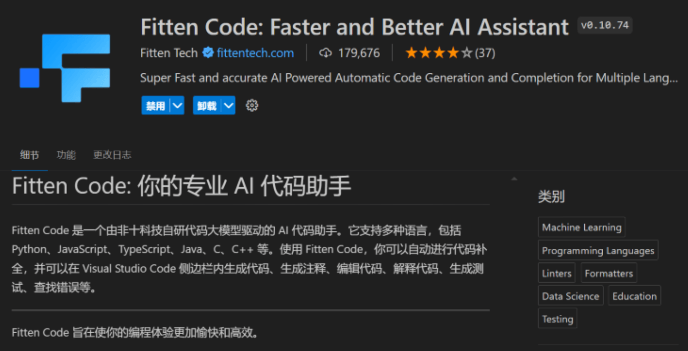 今天为大家推荐一款 VSCode 的插件 Fitten Code,Fitten Code 是由非十大模型驱动的 AI 编程助手,它可以通过智能体自动完成大型项目中的功能、自动生成代码,提升开发效率,帮您调试 Bug,节省您的时间,另外还可以对话聊天,解决您编程碰到的问题。