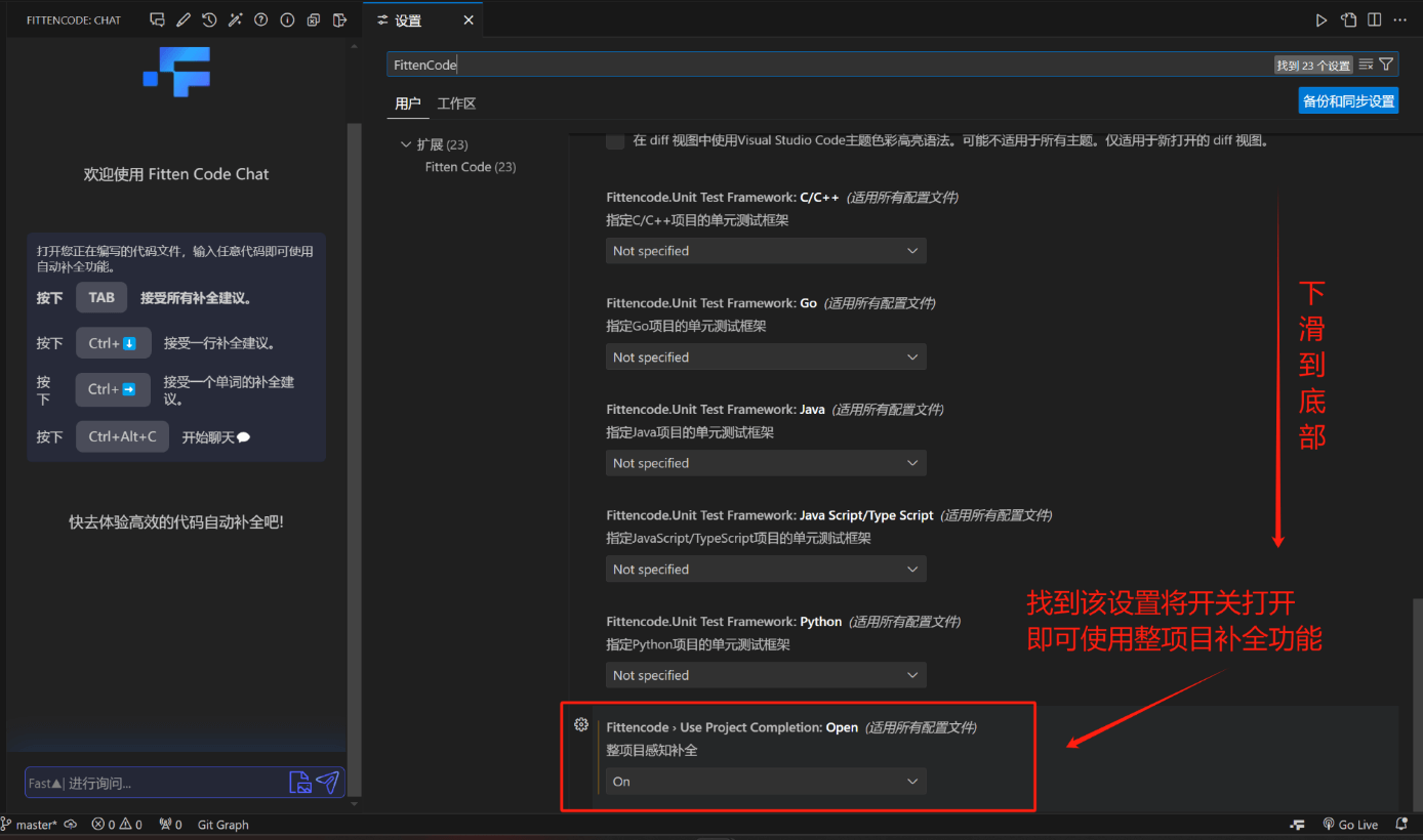 Fitten Code 的整项目感知补全功能,实现了可以在用户编写代码时分析用户的整个项目给出补全建议,而不只是单纯的对于基于单个文件给出补全建议。