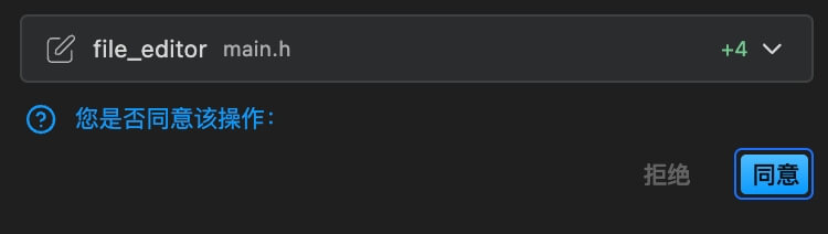 在 Agent 执行的过程中,涉及到创建和修改文件、执行终端命令的操作时,点击"同意"或"拒绝"即可。